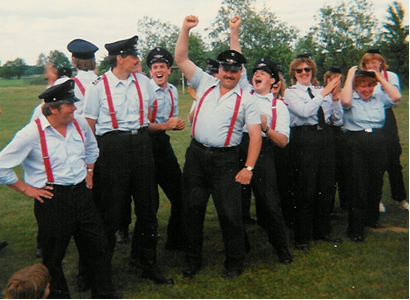 In den Jahren 1990 bis 2000 dominierte vor allem eins das Bild der Feuerwehr Wolthausen, die Wettkampfgruppe. In dieser Zeit sammelten sich zahlreiche Pokale im Schulungs- und Aufenthaltsraum und die Wehr verbrachte viele Wochenenden mit Wettkämpfen oder eben Training für diese. Wie viel Spaß dies den Beteiligten gemacht hat, ist auf dem folgenden Bild zu sehen.