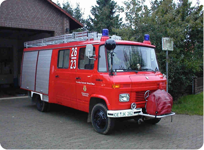 Am 04. Mai 1963 war es endlich so weit. Die Feuerwehr Wolthausen bekam ihr erstes Fahrzeug: einen Ford Transit, der als Feuerwehrfahrzeug nach der Typenspezifikation als TSF (Tragkraftspritzenfahrzeug) ausgestattet war und mit seiner Besatzung und der kompletten Ausrüstung für einen Löschangriff einer Löschgruppe die Wolthäuser Wehr nunmehr richtig mobil machte. Die vorhandene Tragkraftspritze TS 8/8 wurde mit in das neue Fahrzeug übernommen.